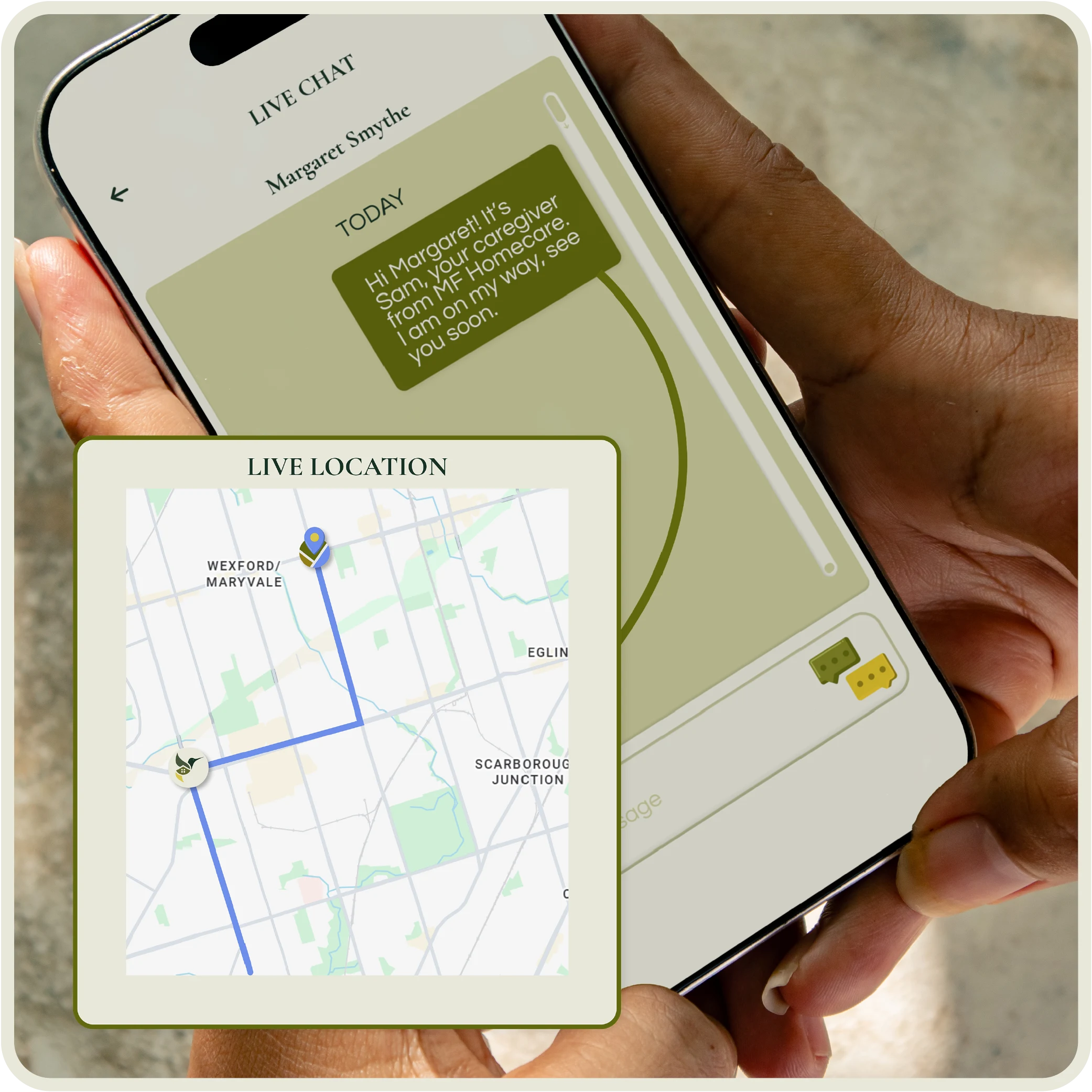 Transparency is built into how we operate. Chat directly with your caregiver to clarify needs or request updates about your loved one. Our live tracking feature provides real-time arrival and peace of mind that your caregiver is where they need to be.